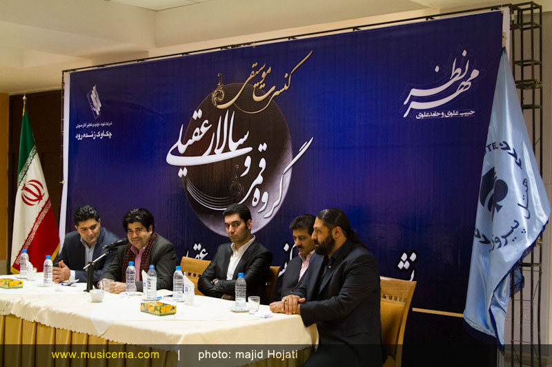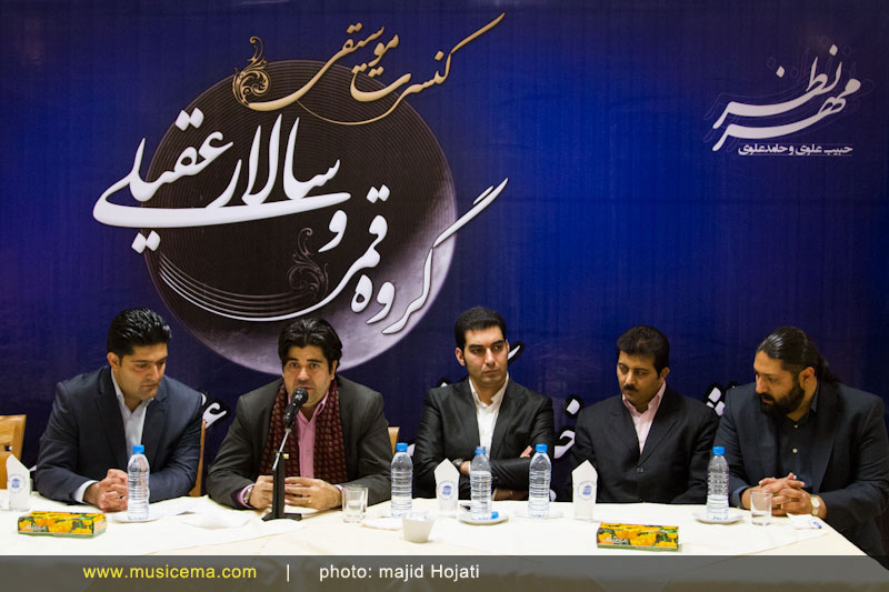 اعضای گروه قمر با لباسهای سنتی به روی سن آمده و به ترتیب پشت سازهای خود قرار گرفتند و سالار عقیلی نیز پس از آنها با پوششی سراپا مشکی بر روی سن حاضر شد.