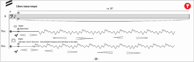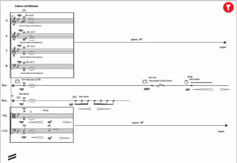 در راستای شفافسازی تحریف شما، پارتیتور قسمتی از قطعه بعد یازدهم در زیر گذاشته شده که فواصل دیسونانس هم بهسادگی در آن مشخص هستند که حال اگر گوش شما قادر به شنیدن این اصوات نبود امید است چشمان حضرتعالی توانا به دیدن این فواصل باشد.