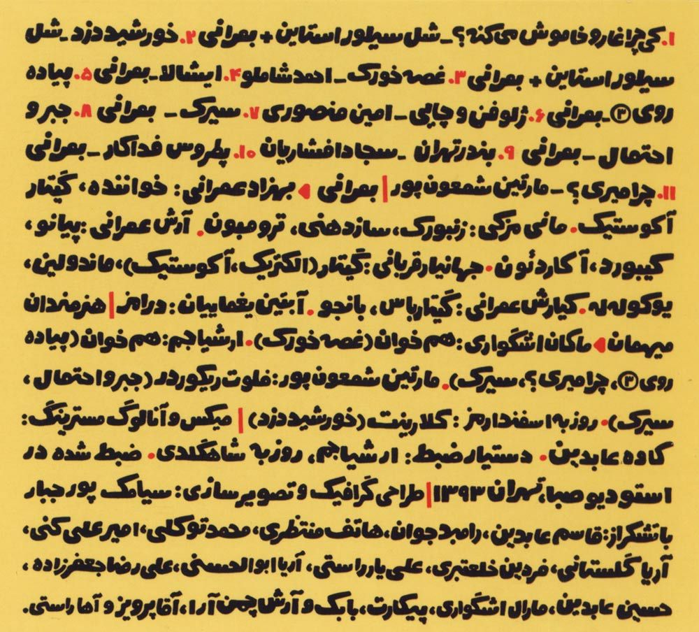 بهزاد عمرانی، آبتین یغمائیان، کیارش عمرانی، جهانیار قربانی، آرش عمرانی، مانی مزکا، روزبه اسفندارمز، مارتین شمعون پور
