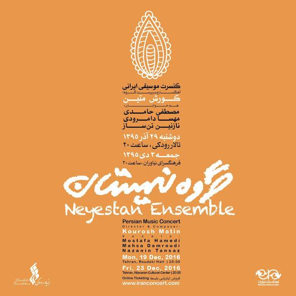 موسیقی ما - گروه موسیقی سنتی «نیستان» به خوانندگی «مصطفی حامدی» سوم دی ماه ساعت 20 در سالن اصلی فرهنگسرای نیاوران روی صحنه میرود.