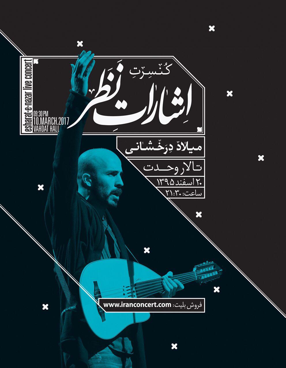 موسیقی ما - میلاد درخشانی، آخرین کنسرت «اشارات نظر» را پیش از انتشار دومین آلبوم باکلام خود، با اجرای قطعاتی شنیده نشده از این آلبوم در تالار وحدت روی صحنه میبرد.