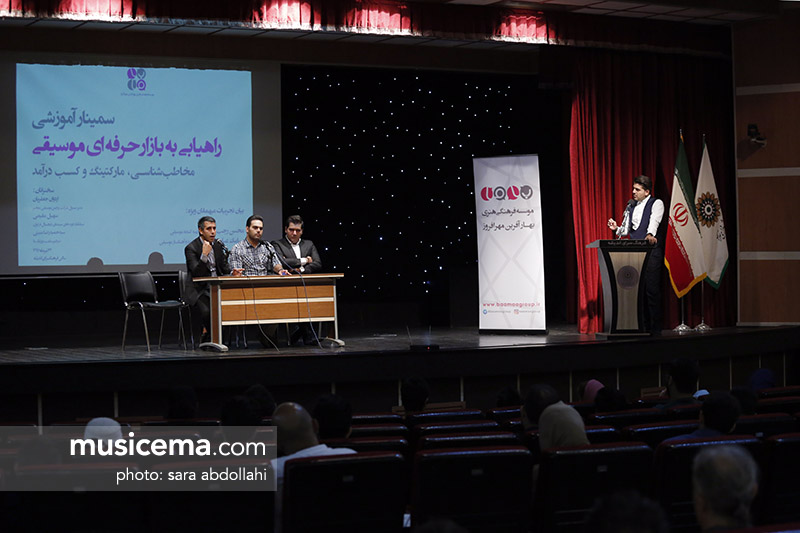 موسیقی ما - سمینار راهیابی به بازار موسیقی با حضور دست اندر کاران و متولیان موسیقی در کشور برگزار شد. در این سمینار که پنجشنبه 22 تیرماه 1396 از ساعت 14 الی 20 توسط موسسه فرهنگی هنری بهار آفرین مهرافروز (باما) و با همکاری وبسایت موسیقی ما برگزار شد. محسن رجب پور تهیه کننده موفق موسیقی، سیامک عباسی خواننده و آهنگساز موسیقی، اردوان جعفریان مدیر شرکت پردیس موسیقی معاصر، سهیل مقیمی مدیرمسئول موسسه ی فرهنگی هنری باما و سید حمیدرضا منبتی سردبیر سایت موسیقی ما مباحث مختلفی را مطرح کردند.
