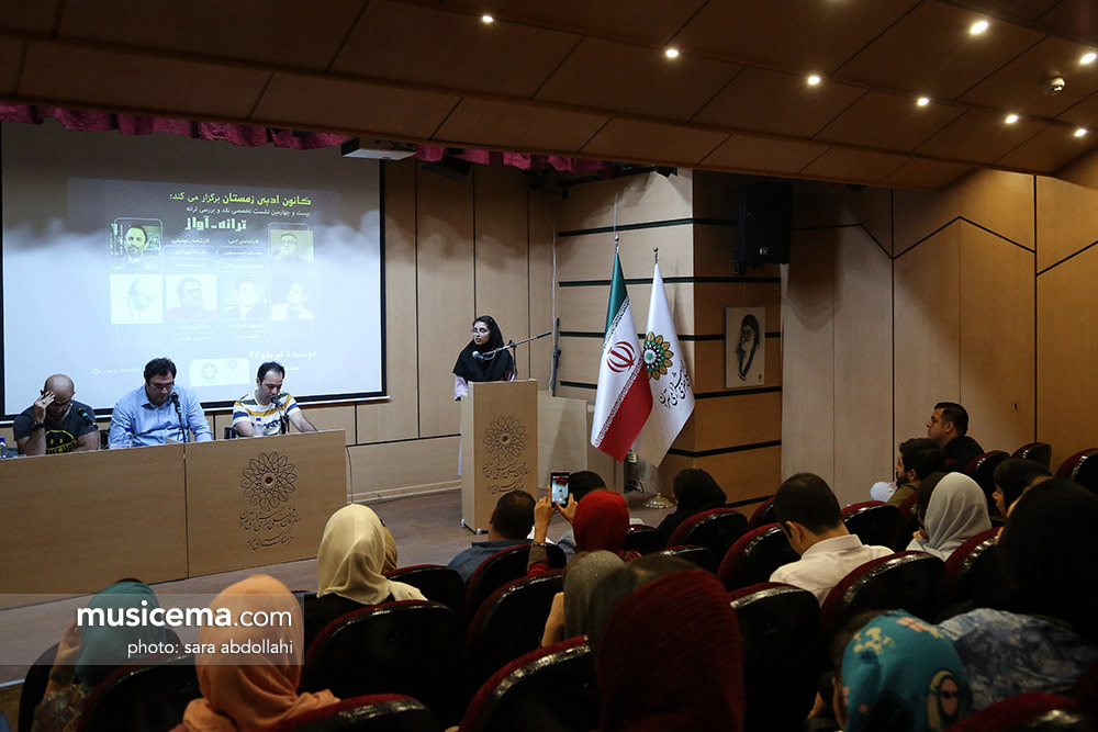موسیقی ما – بیست و چهارمین نشست تخصصی نقد و بررسی ترانه کانون ادبی زمستان که اولین جلسه این برنامه در فصل تابستان بود، چهارم تیرماه برگزار شد. در این برنامه جمعی از شعرا و ترانهسرایان باسابقه و جوان حضور داشتند و به نقد و بررسی آثار مختلف پرداختند. در این برنامه هم مانند سایر جلسات کانون ادبی زمستان، سجاد عزیزی آرام کارشناس و مجری برنامه بود. مهدی ایوبی و مهدی موسوی میرکلایی به عنوان کارشناسان ادبی در برنامه حضور داشتند و کیان مقدم و حمید آداب هم کارشناسان موسیقی بودند. در این برنامه دکتر «شهروز غفورینیا» به عنوان خواننده مهمان حضور داشت و آثاری را برای حضار خواند. اجرای این خواننده جوان که تحصیلات عالیه در زمینه پزشکی دارد با استقبال خوبی مواجه شد و او خبر از انتشار آثار جدیدش طی روزهای آینده داد. شهروز غفورینیا پیش از این آثاری را با همکاری چهرهها سرشناس موسیقی و ترانه نظیر روزبه بمانی و مهدی یراحی تهیه کرده بود.